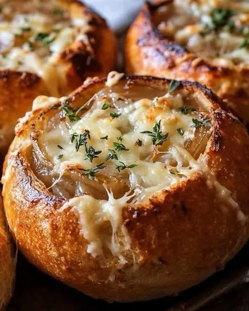 Cheesy topping: broil the soup with cheese for a classic French onion crust