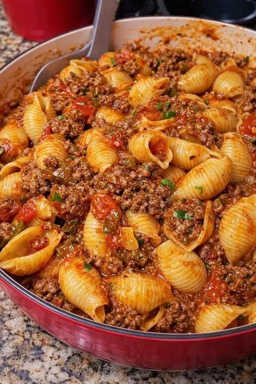 🍝 Ground Beef Pasta with Shells & Tomato Sauce