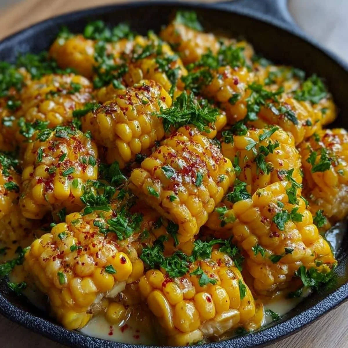 Taste a small spoonful of the corn to see if it needs more salt or a tiny bit more honey. Everyone has different tastes so feel free to adjust. Top the whole dish with fresh chopped parsley to give it a pop of green color and a fresh finish. Serve it immediately while it is hot and at its creamiest texture.