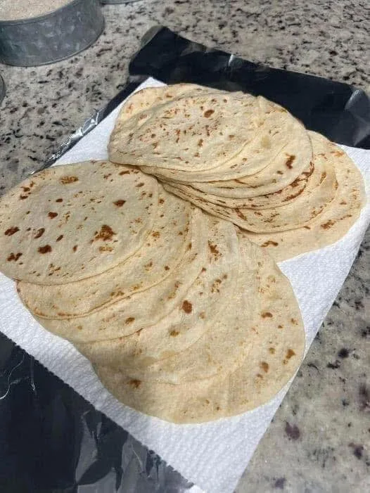 Cook each tortilla 30–45 seconds per side, until lightly golden spots form.