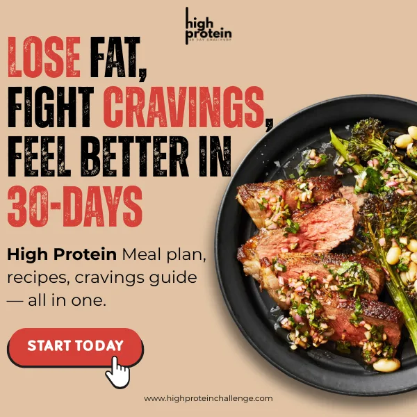 Want more motivation and real-life strategies to make the dream of a healthier body and mind true ? Our 30-Day High Protein Challenge is built for you!Start with a proven 4-week meal plan & know eat exactly what to eat and, when to eat. Get a personalized High Protein meal plan, Beginner Guides, Cookbooks, Shopping Lists and more to start losing weight and improving your health now!