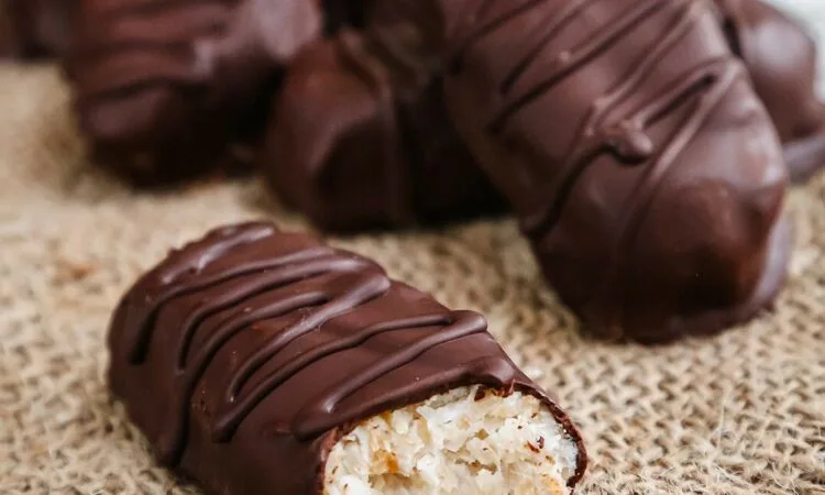 Dip each coconut bar into melted chocolate, coating completely. Place back onto lined tray.