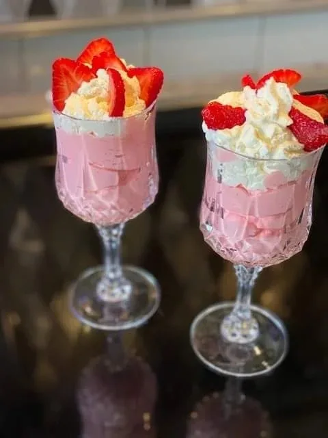 This light, airy dessert tastes like strawberry cheesecake in cloud form β€” rich, refreshing, and perfect for healthy treats or party cups.